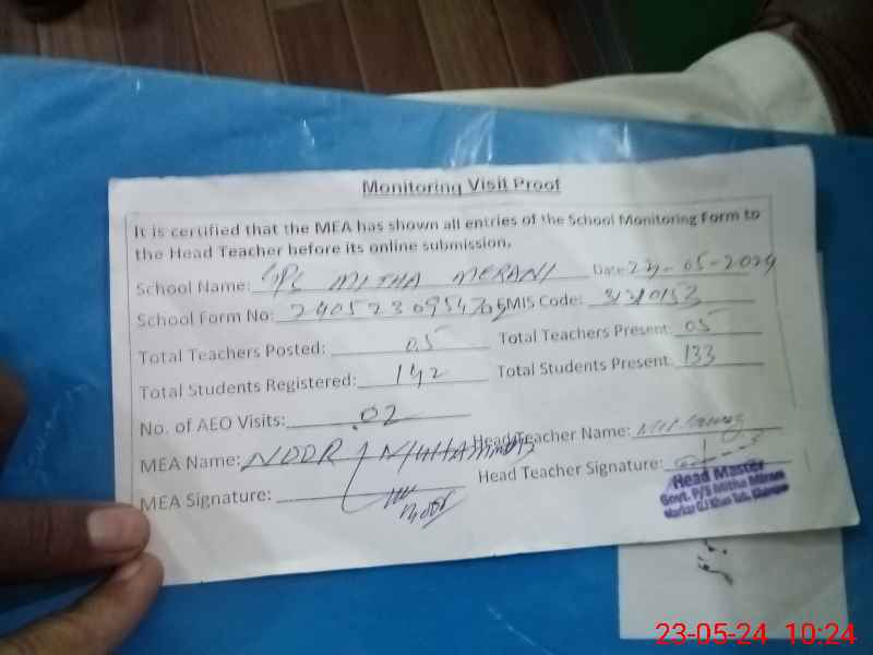 | EMIS Code: 31310153 | Name of School: GPS MITHA MERANI (After Noon) | |||