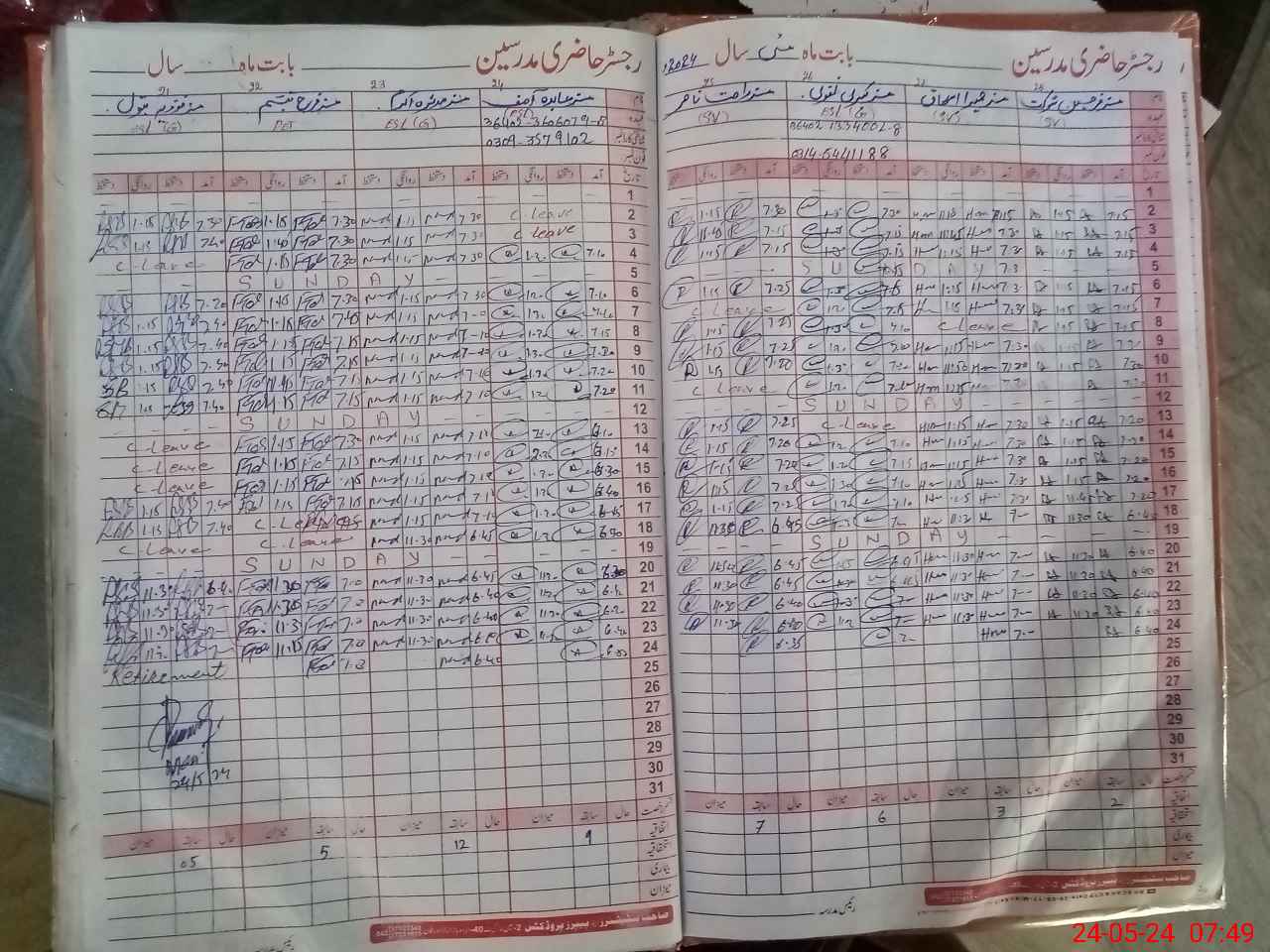 | CNIC | Full Name | Designation | R/C | Absence During Last Calender Month |