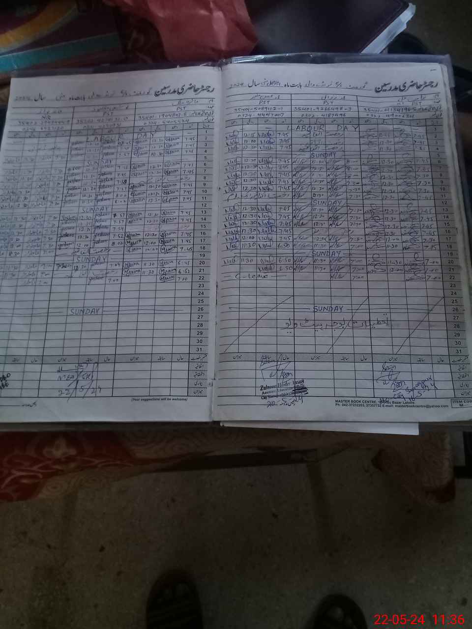 | CNIC | Full Name | Designation | R/C | Absence During Last Calender Month |
