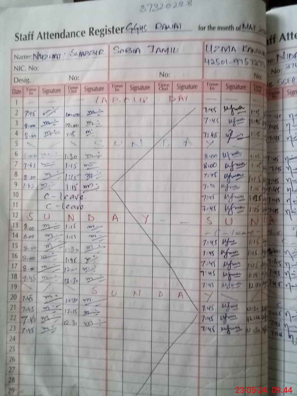 | Name: Nu**** Sh**** Designation: (School Headmaster's/Headmistress's) SST (Sci) Phone/Cell Number: 03**** |
