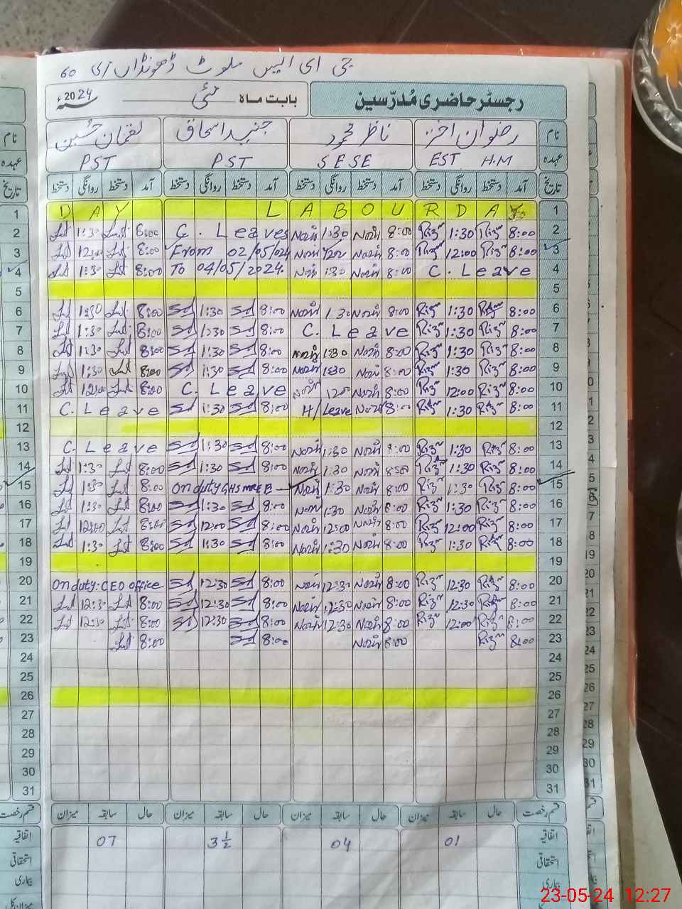 | CNIC | Full Name | Designation | R/C | Absence During Last Calender Month |