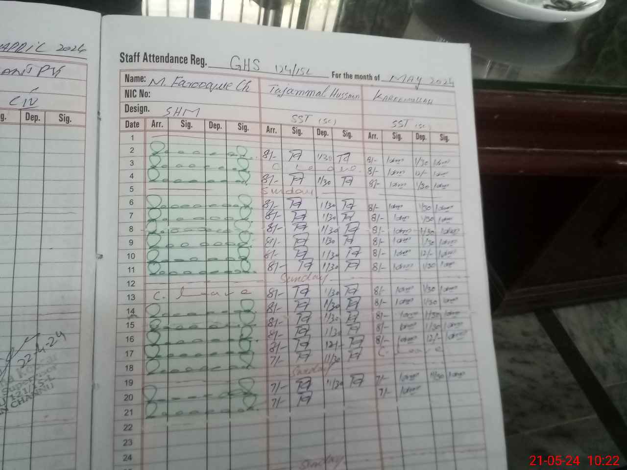 | 16**** | Sy**** If**** Hu**** Sh**** | 1 | 0 | 6 | 0 | 0 | 0 | 0 | 0 | 0 | 0 | Exam Duty | |