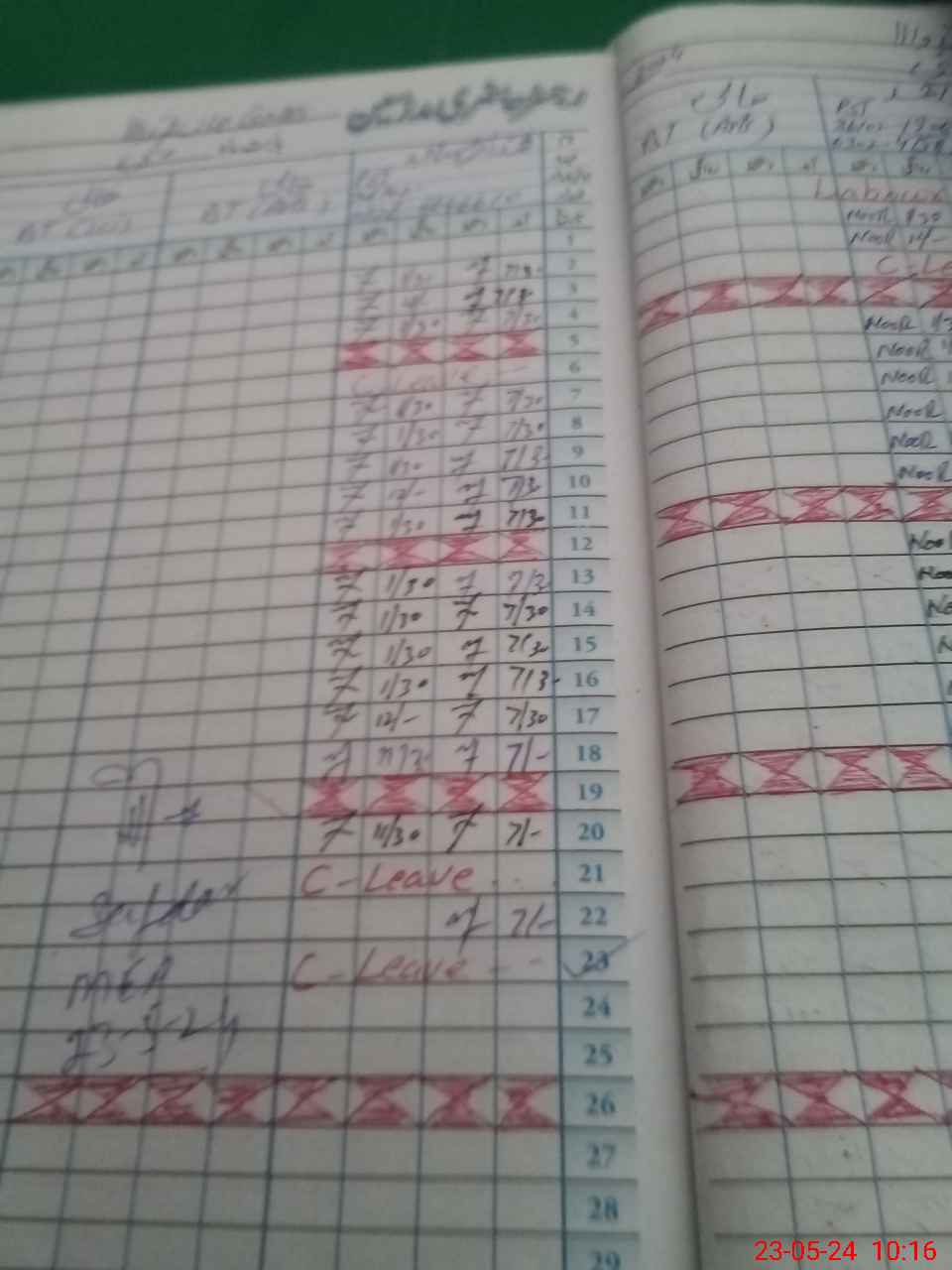 | Leave | Duty | Absent | Maternity | Medical | Ex- Pak |
