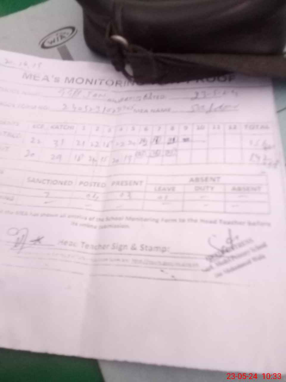 | Attendance Register | Head Teacher | MEA with School | Visit Proof |