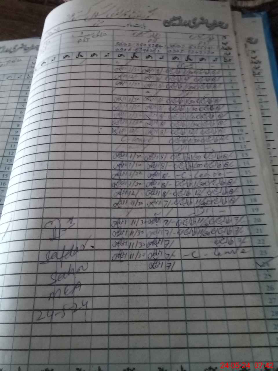 | CNIC | Full Name | Designation | R/C | Absence during last cal. month |