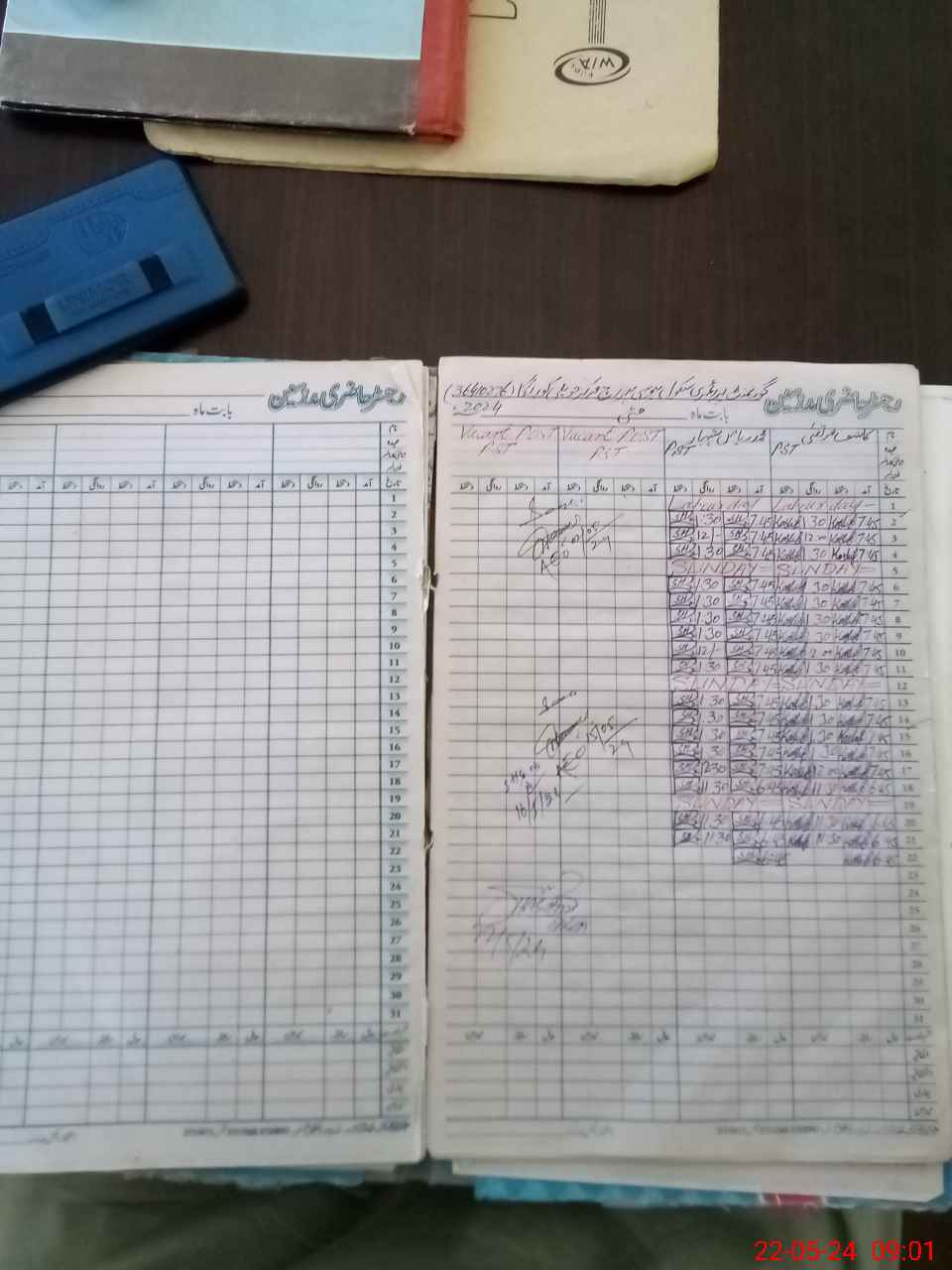 | CNIC | Full Name | Designation | R/C | Absence During Last Calender Month |
