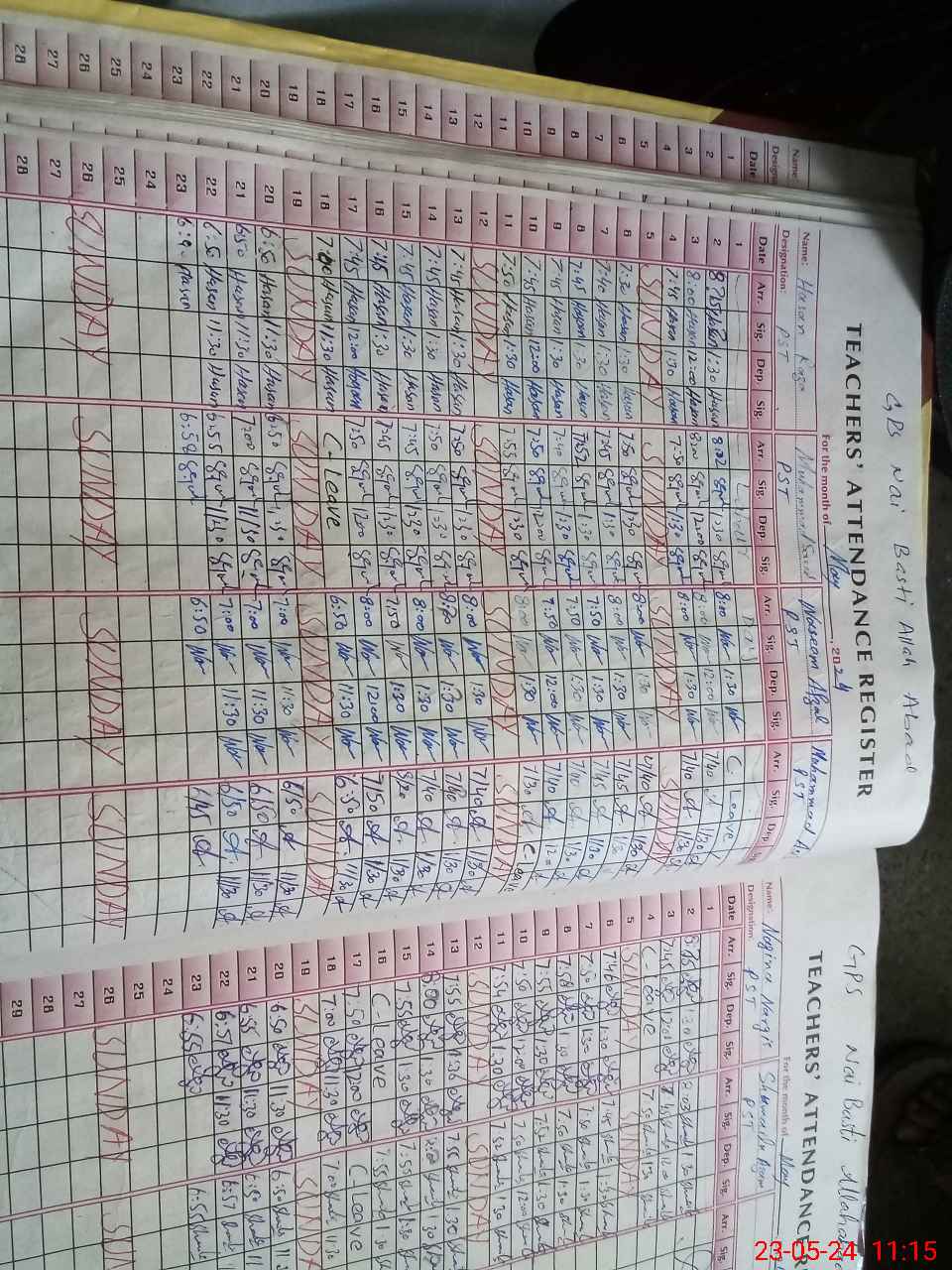 | CNIC | Full Name | Designation | R/C | Absence During Last Calender Month |