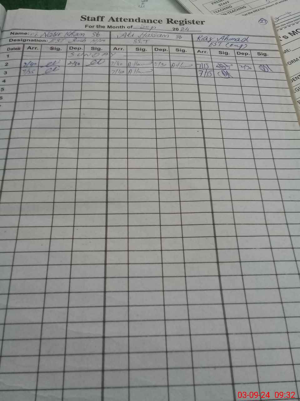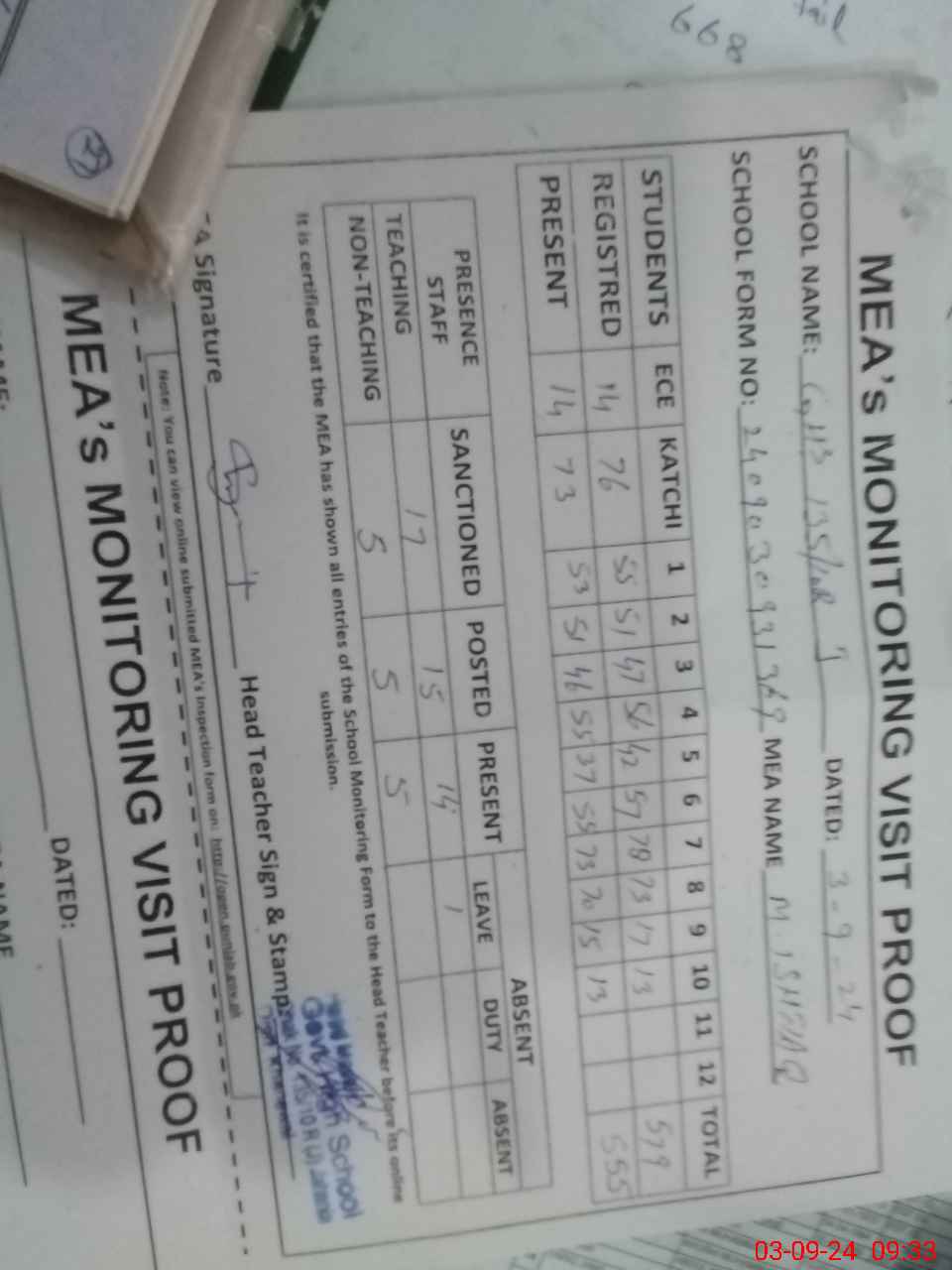 | Monitoring Date: 03-09-2024 | Start Time: 03-09-2024 09:01 AM | End Time: 03-09-2024 09:45 AM | Name of MEA: M.Is**** (S**** 03**** | |