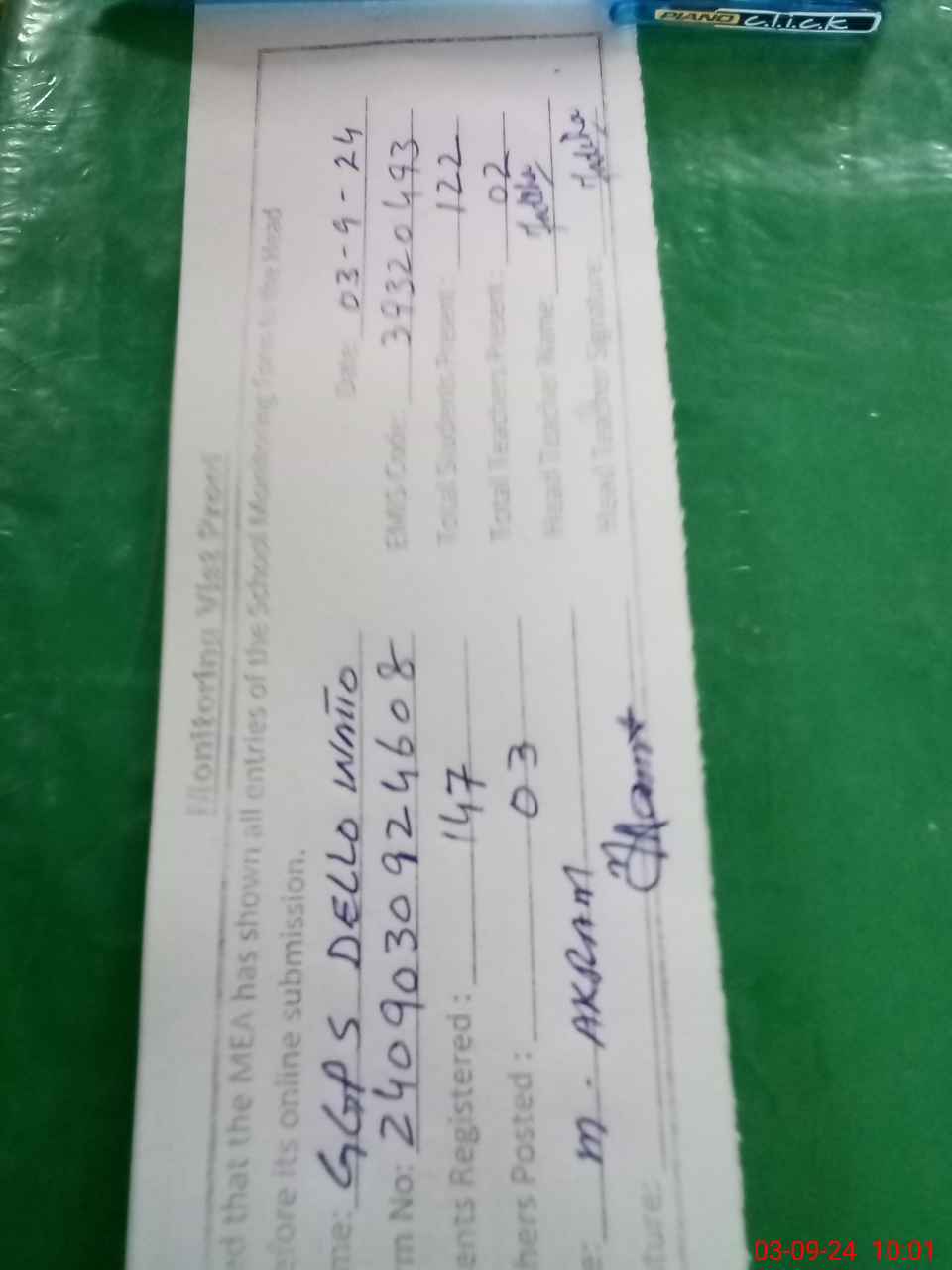 | Name: MA**** JA**** Designation: (School Headmaster's/Headmistress's) ESE Phone/Cell Number: 03**** |
