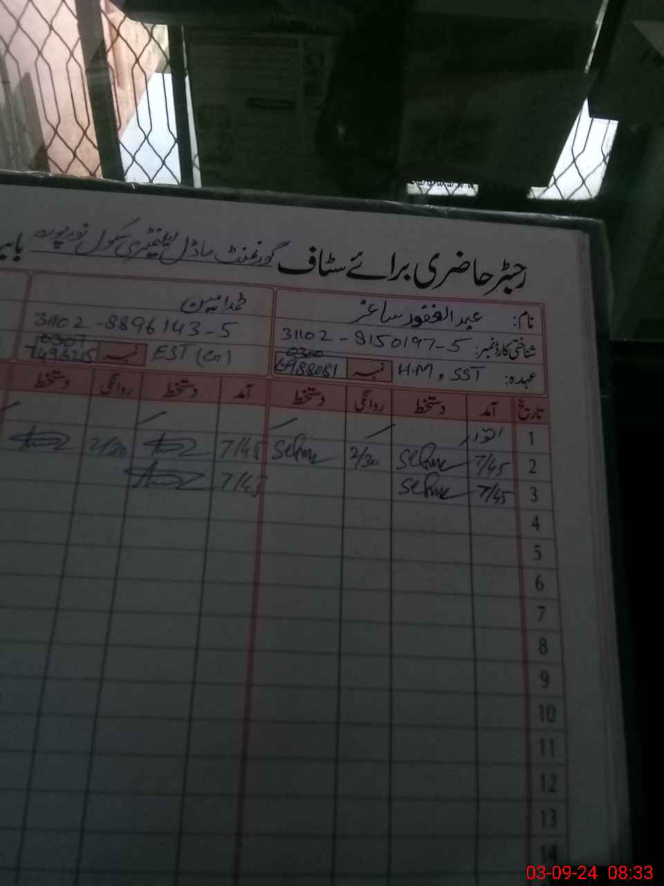 | Name: Mo**** So**** An**** Designation: (School Headmaster's/Headmistress's) E S T Sci Phone/Cell Number: 03**** |