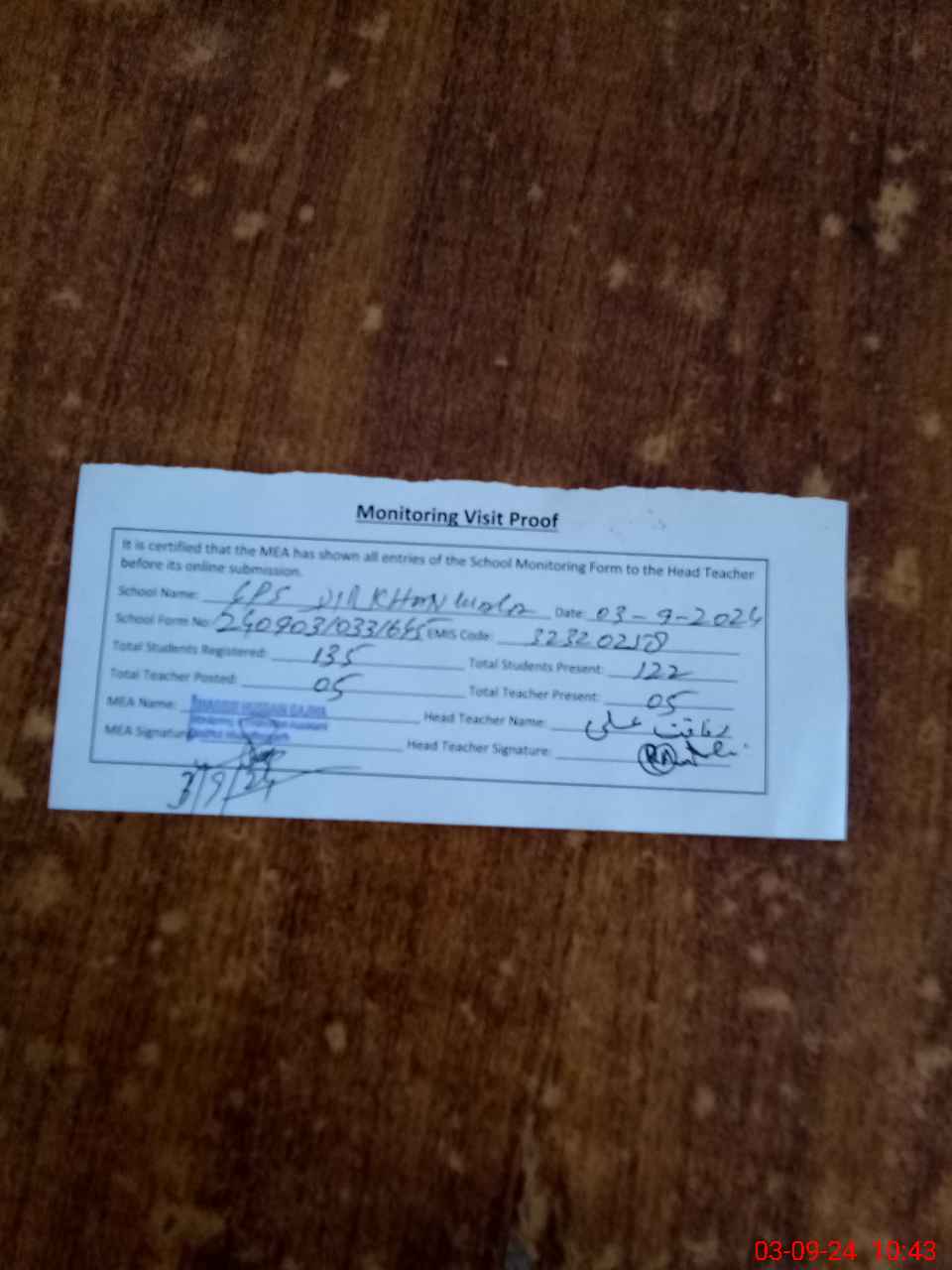 | EMIS Code: 32320258 | Name of School: GPS DIRKHAN WALA | |||