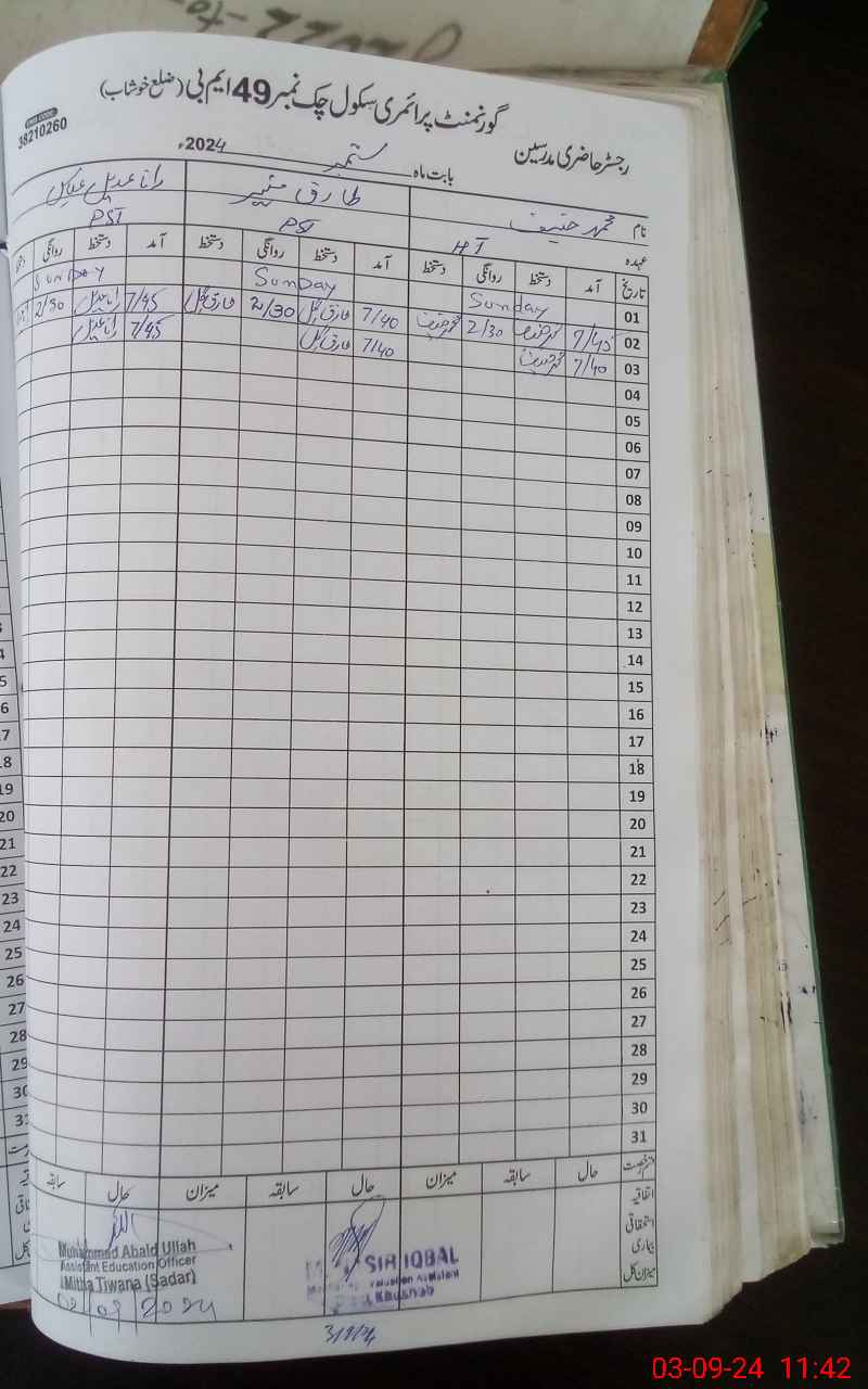 | District: KHUSHAB | Tehsil: KHUSHAB | Markaz: MITHA TIWANA (SADAR) (MALE) | Level: Primary | |
