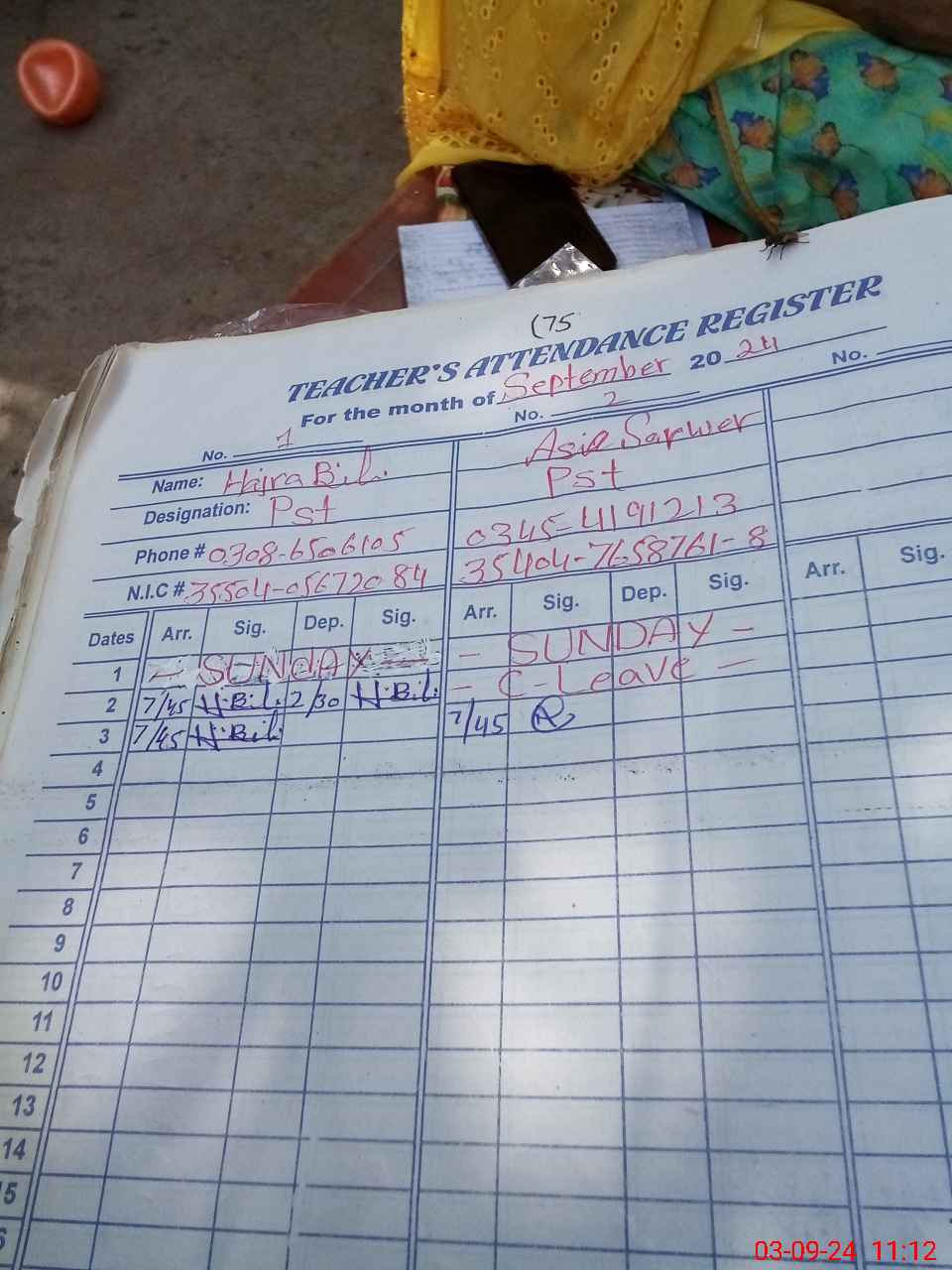 | Name: AS**** SA**** Designation: (School Headmaster's/Headmistress's) ESE(Sci Math ) Phone/Cell Number: 03**** |