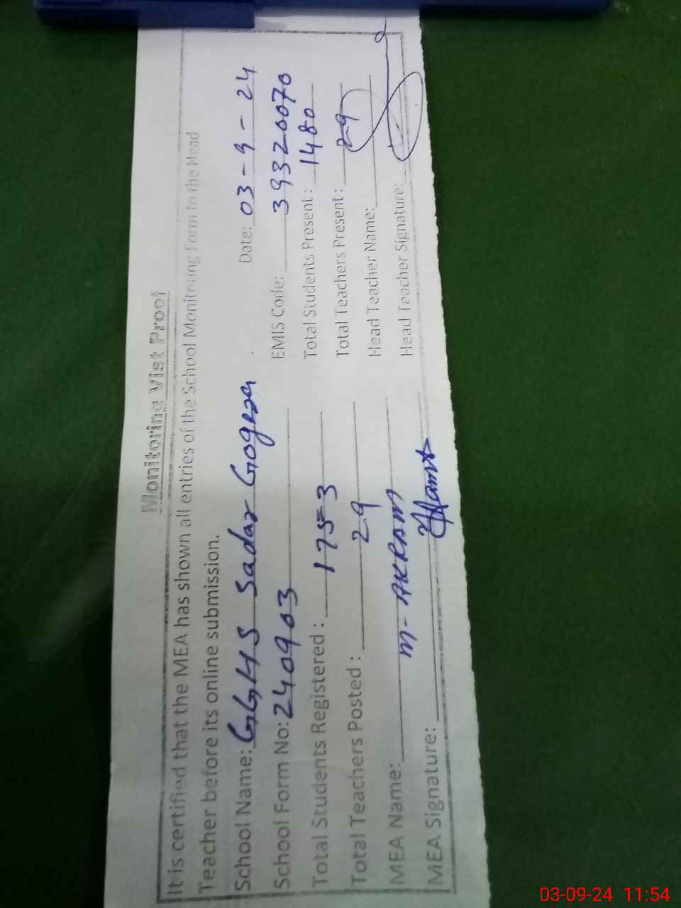 | EMIS Code: 39320070 | Name of School: GGHS SADAR GOGERA | |||