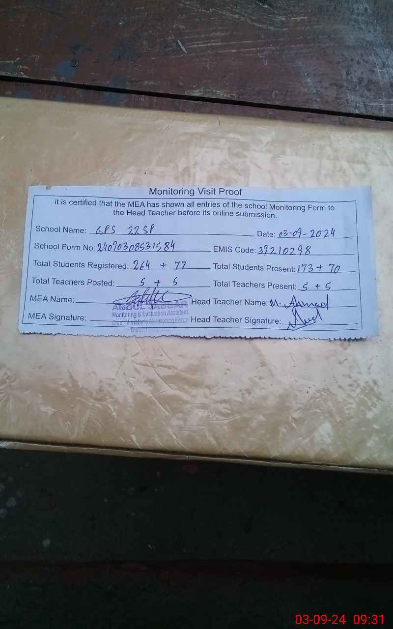 | EMIS Code: 39210298 | Name of School: GPS 22 SP | |||