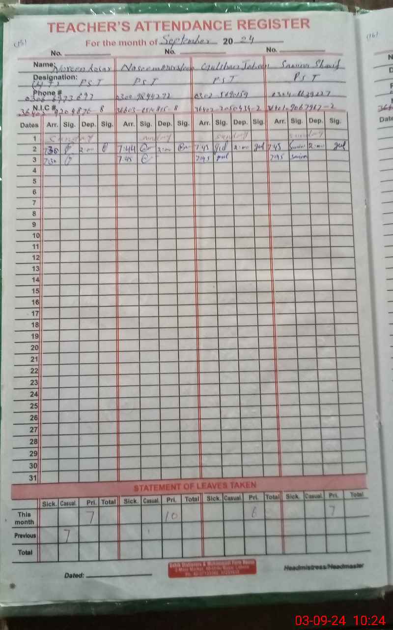| Name: NO**** KO**** Designation: (School Headmaster's/Headmistress's) PST Phone/Cell Number: 03**** |