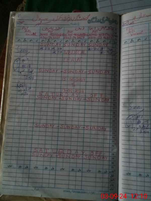| Leave | Duty | Absent | Maternity | Medical | Ex- Pak |