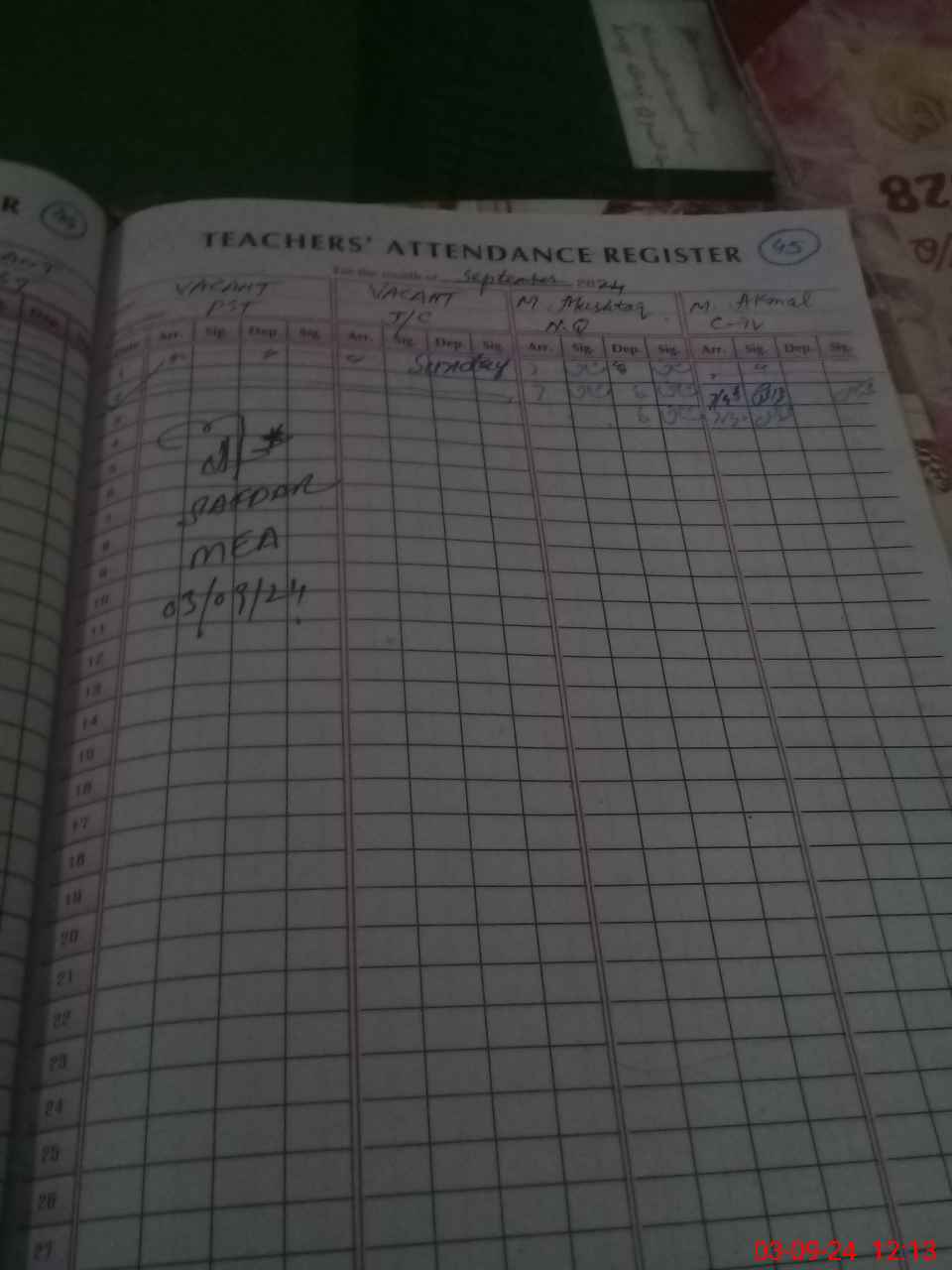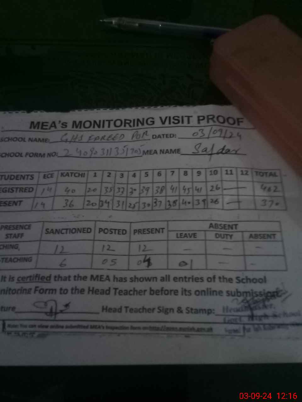 | Attendance Register | Head Teacher | MEA with School | Visit Proof |