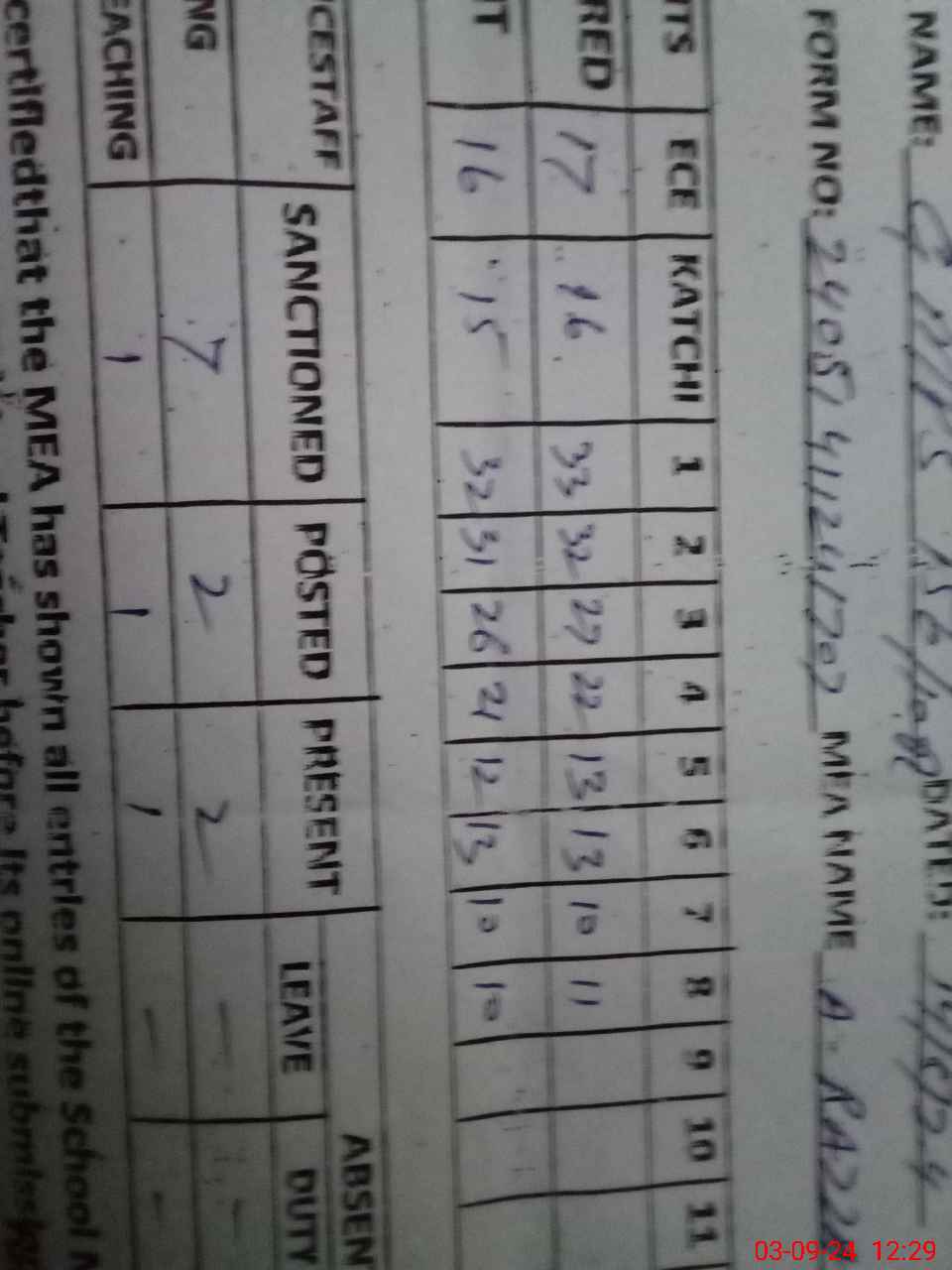 | Certified that this School was Inspected by the Undersigned MEA/DMO Today and the Information Stated Above is as Per Record. | |||||