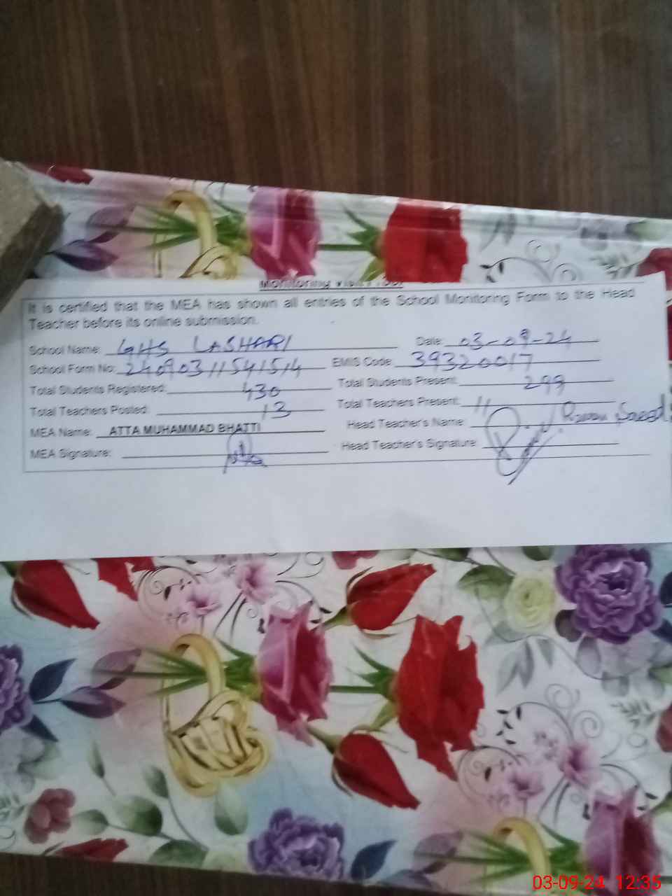 | EMIS Code: 39320017 | Name of School: GHS LASHARI | |||