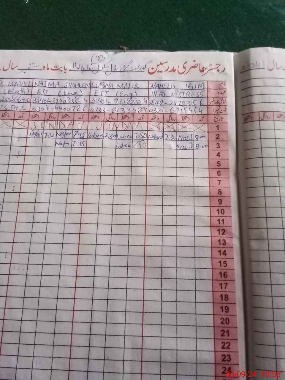 | Name: Na**** Ir**** Designation: (School Headmaster's/Headmistress's) SST Science Phone/Cell Number: 03**** |