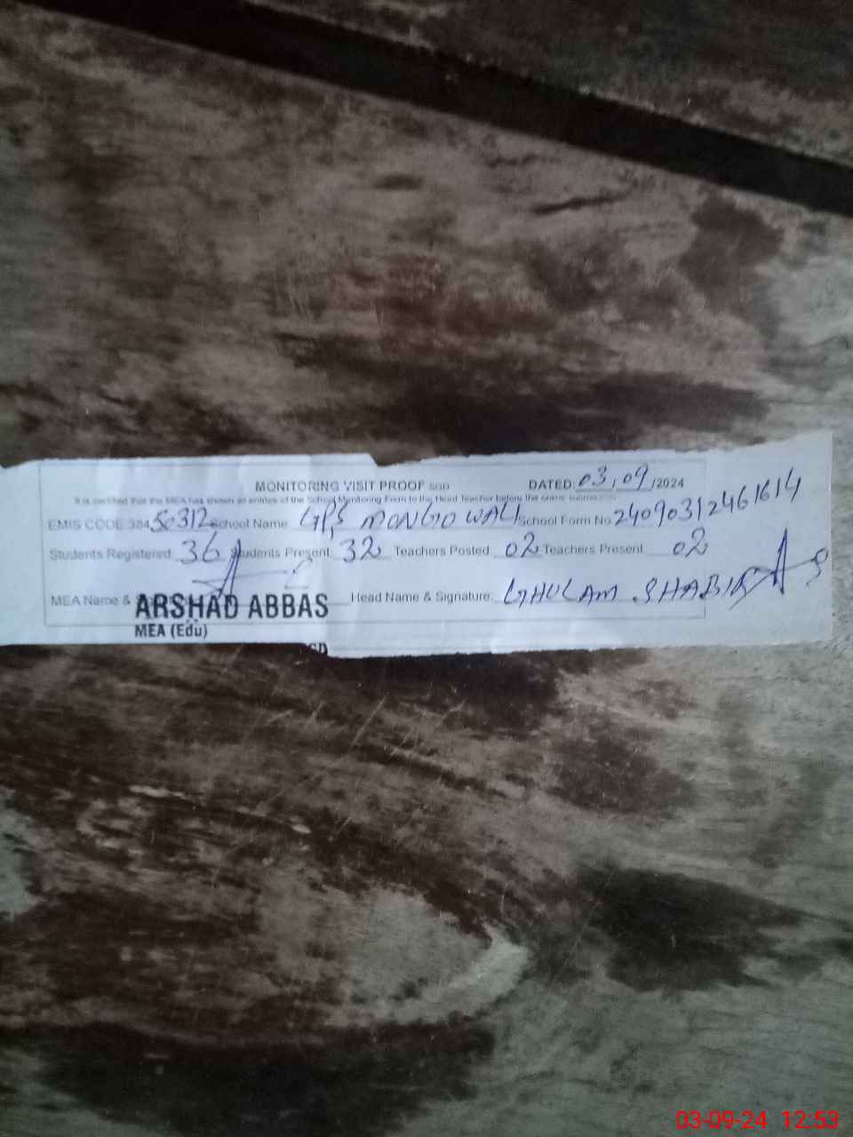 | Certified that this School was Inspected by the Undersigned MEA/DMO Today and the Information Stated Above is as Per Record. | |||||