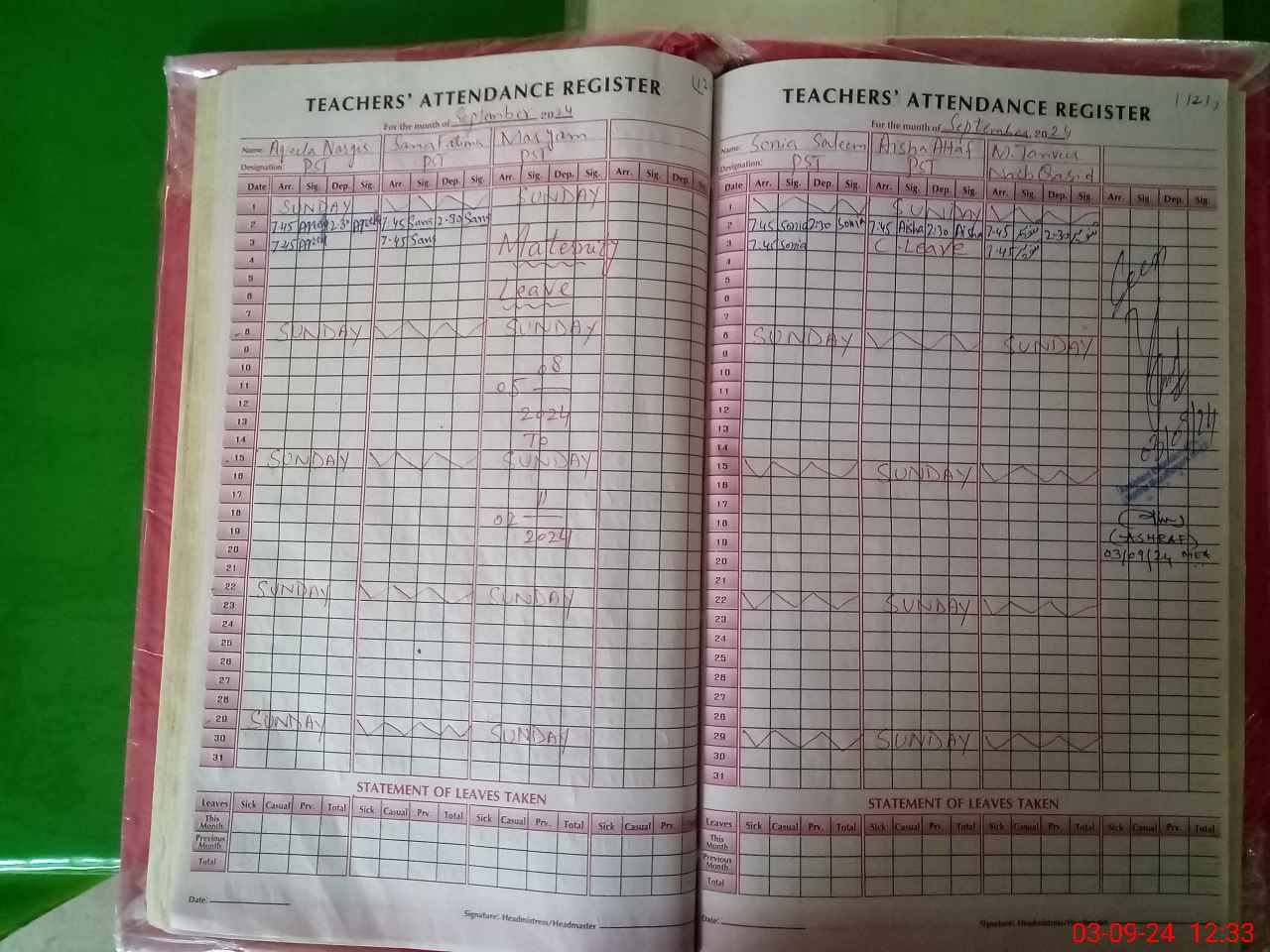 | Name: AQ**** NA**** Designation: (School Headmaster's/Headmistress's) PST Phone/Cell Number: 03**** |