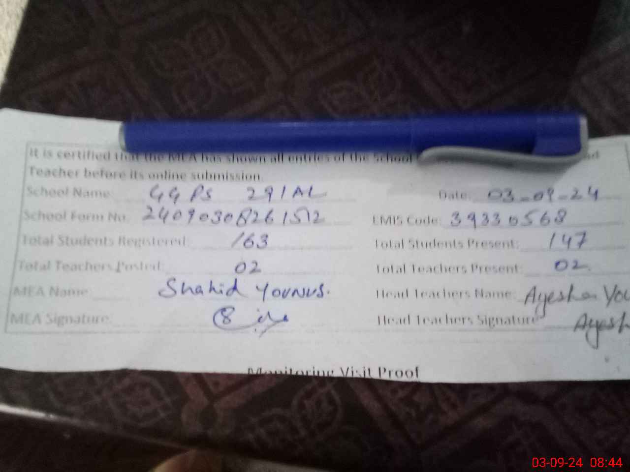 | Certified that this School was Inspected by the Undersigned MEA/DMO Today and the Information Stated Above is as Per Record. | |||||