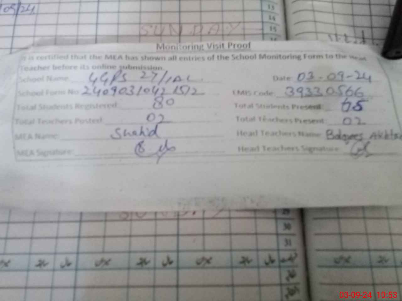 | EMIS Code: 39330566 | Name of School: GGPS CHAK NO. 27/1-AL | |||