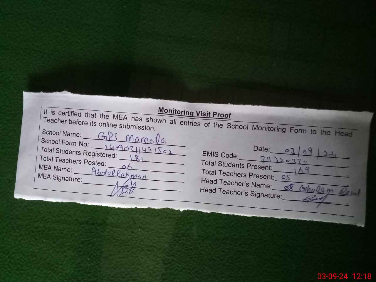 | EMIS Code: 39320330 | Name of School: GPS MAROOLA | |||