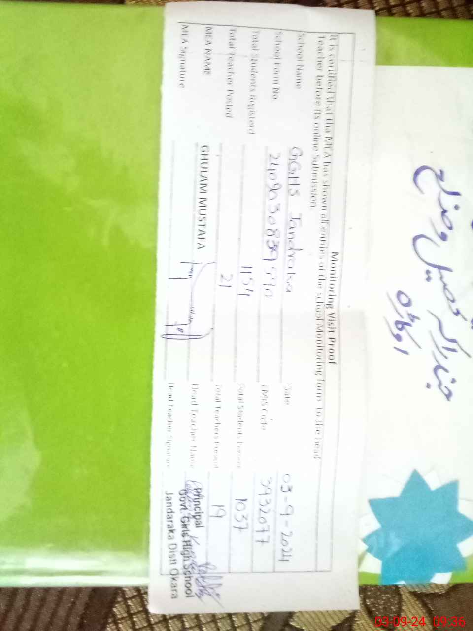 | Remarks (Use Separate Page if Required): GGHS Jandraka visited and found overall well | |||||