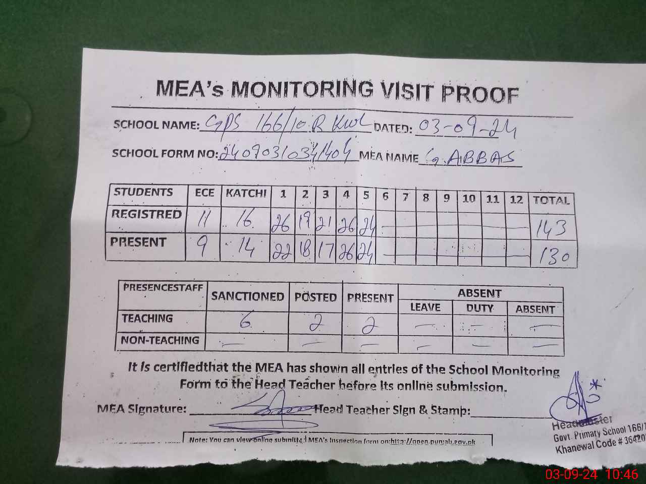 | EMIS Code: 36420214 | Name of School: GPS 166/10-R KHANEWAL | |||