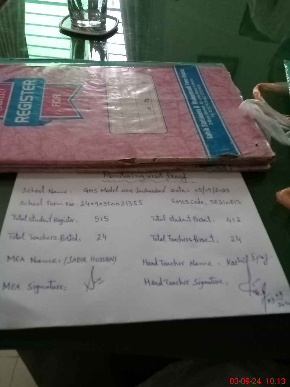 | Attendance Register | Head Teacher | MEA with School | Visit Proof |