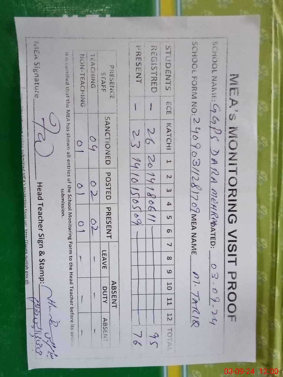 | EMIS Code: 36410472 | Name of School: GGPS DARA MEHRAM, ABDUL HAKIM | |||