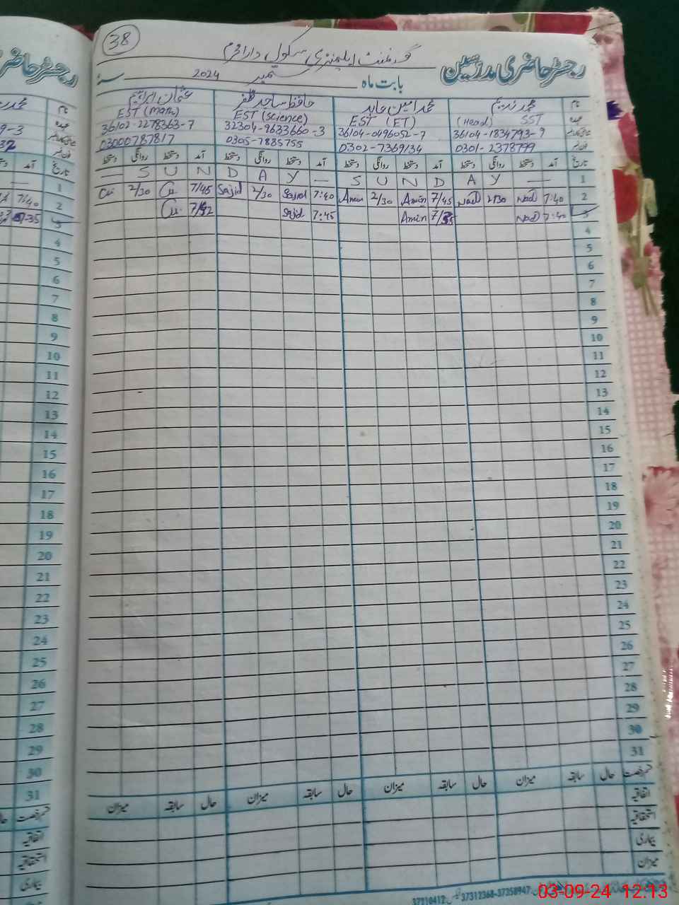 | Name: Mu**** Na**** Designation: (School Headmaster's/Headmistress's) SST (MATH PHYSICS) Phone/Cell Number: 03**** |