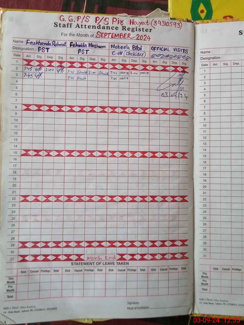 | Name: Fa**** Re**** Designation: (School Headmaster's/Headmistress's) PST Phone/Cell Number: 03**** |