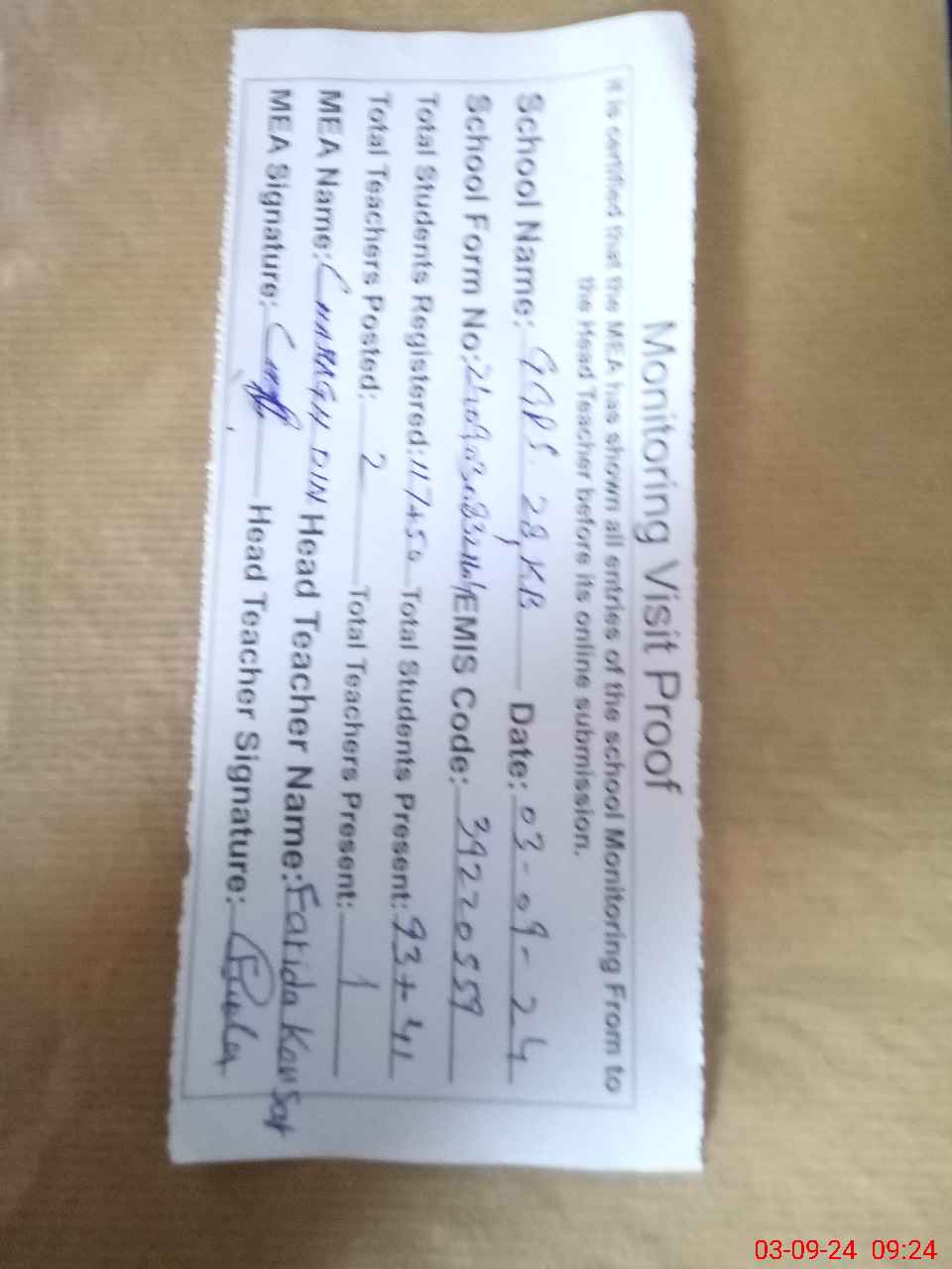 | EMIS Code: 39220559 | Name of School: GGPS 28/KB | |||