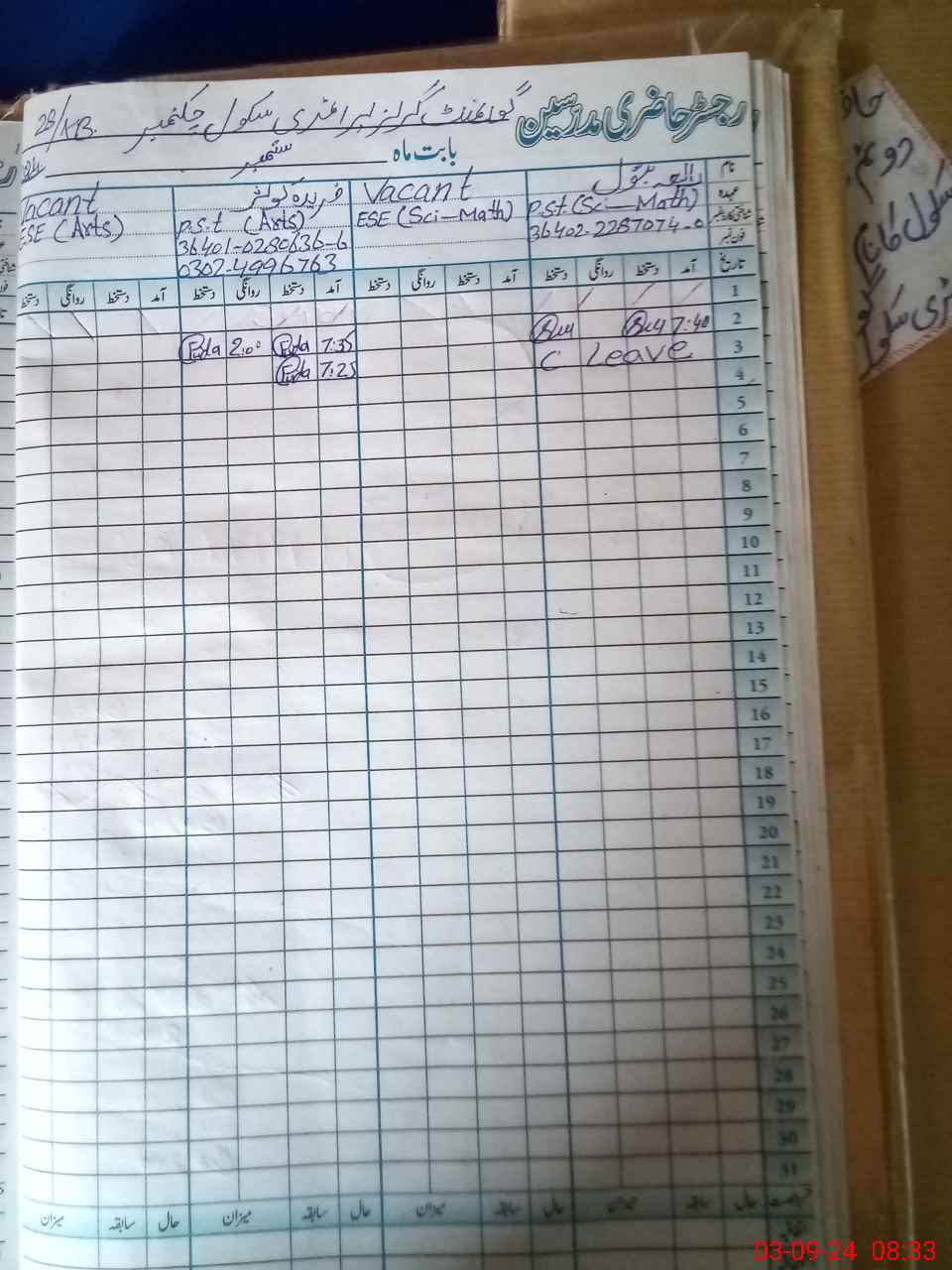 | Name: RA**** BA**** Designation: (School Headmaster's/Headmistress's) PST Phone/Cell Number: 03**** |