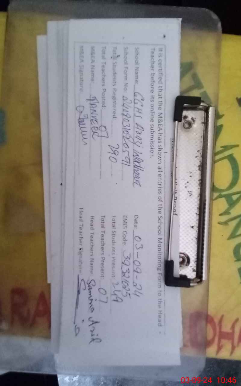 | EMIS Code: 39321025 | Name of School: GGHS ARAZI WADHAVA | |||