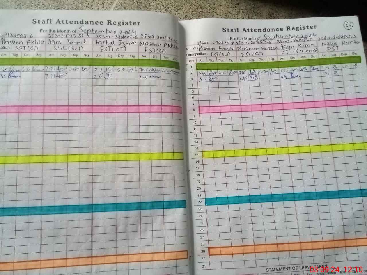 | CNIC | Full Name | Designation | R/C | Absence During Last Calender Month |