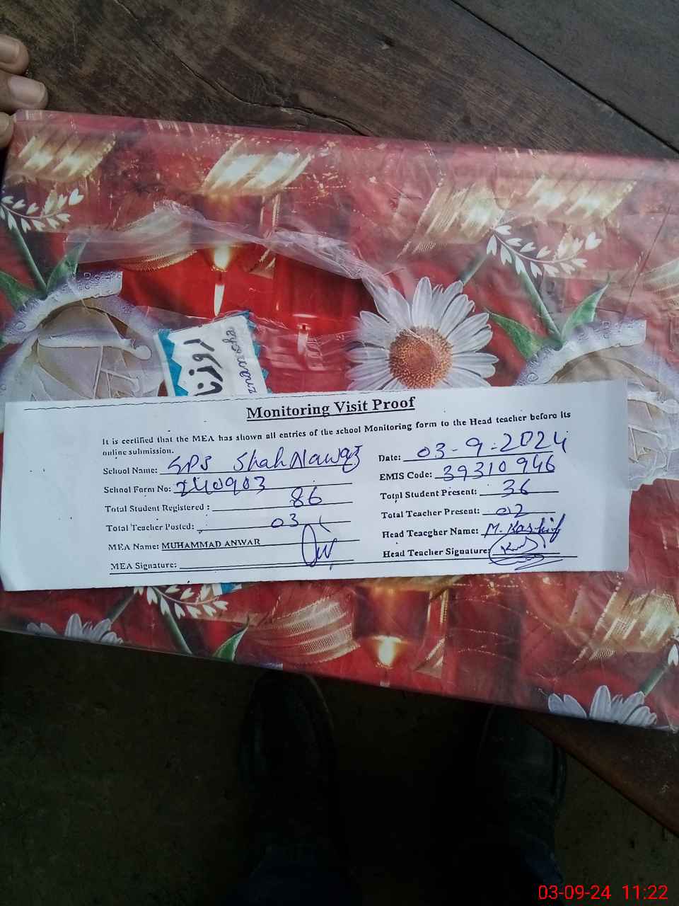 | EMIS Code: 39310946 | Name of School: GPS SHAH NAWAZ | |||