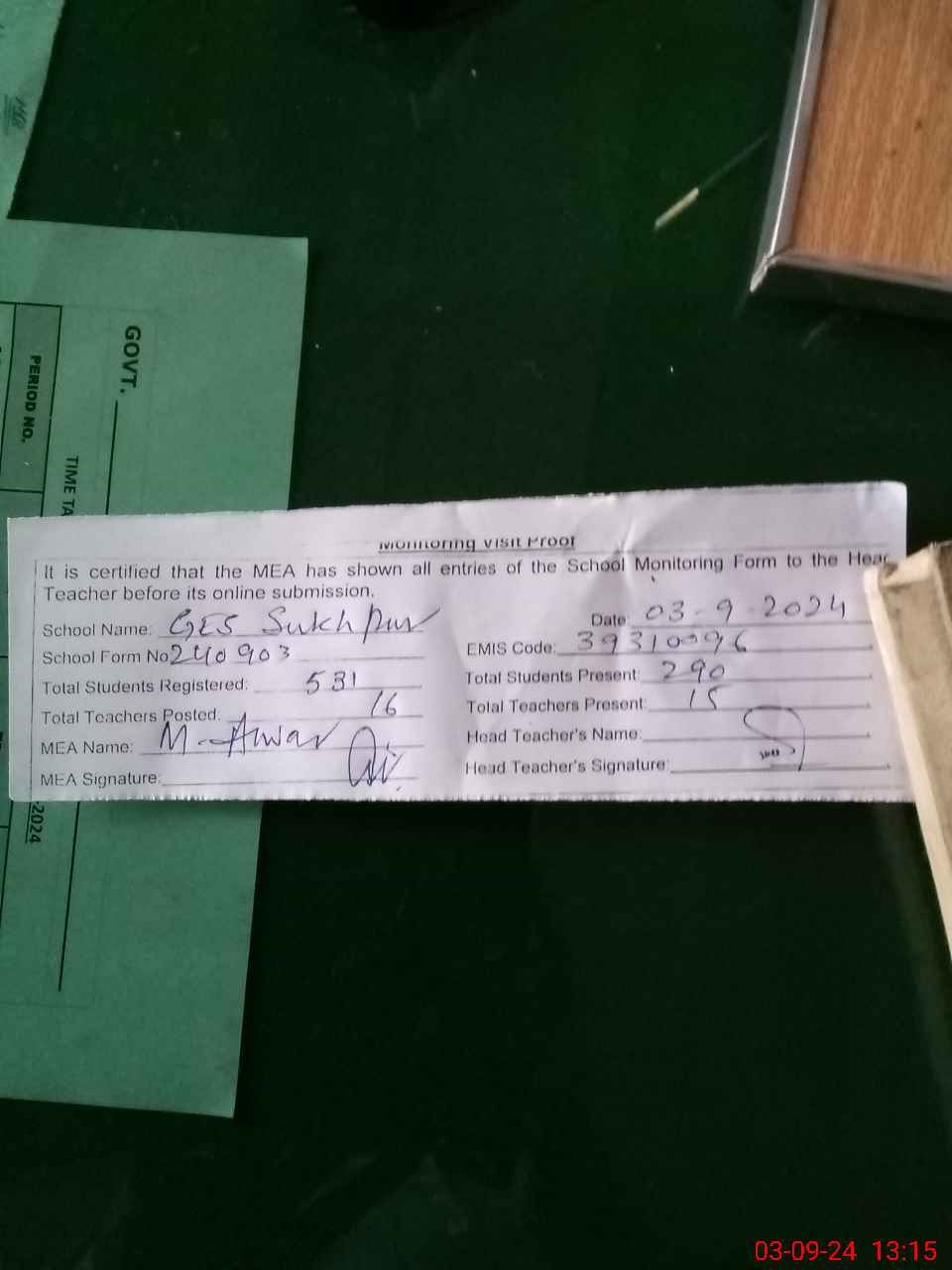 | EMIS Code: 39310096 | Name of School: GES SUKH PUR | |||