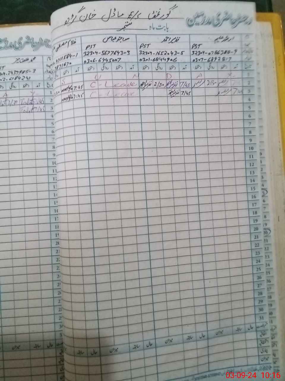 | CNIC | Full Name | Designation | R/C | Absence During Last Calender Month |