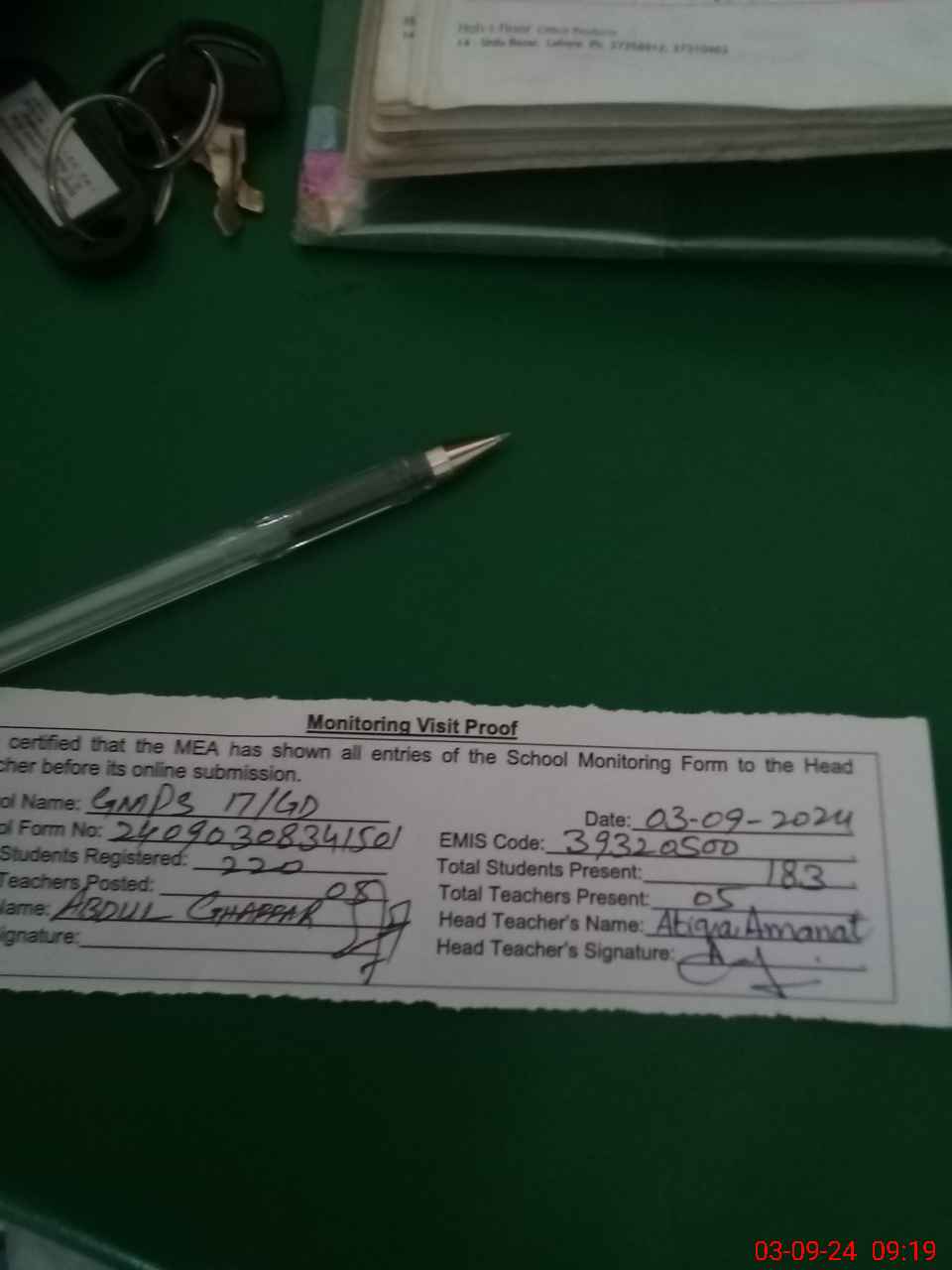 | EMIS Code: 39320500 | Name of School: GMPS 17/G.D | |||