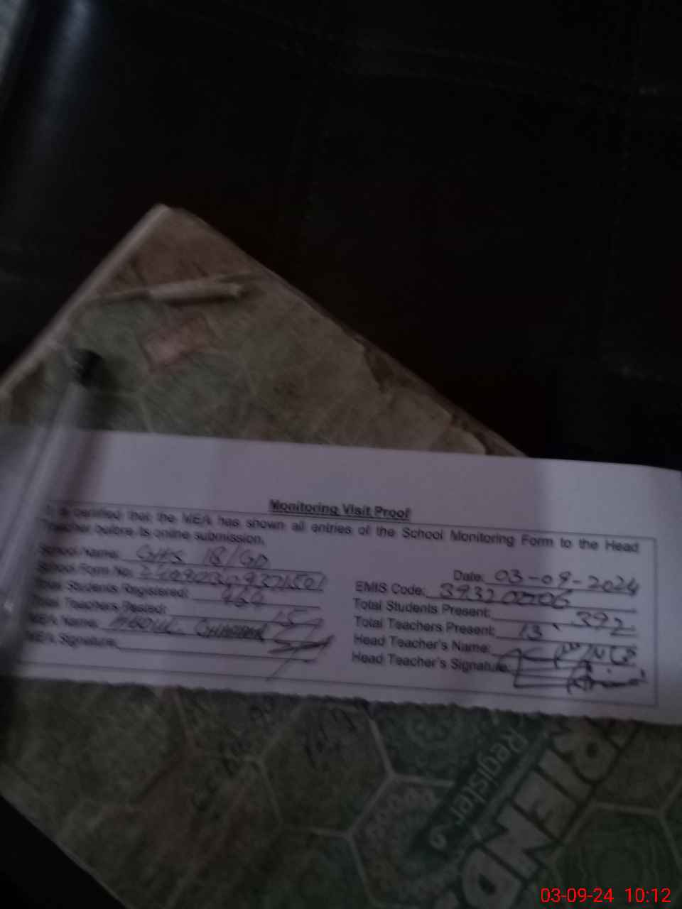 | EMIS Code: 39320006 | Name of School: GHS CHAK NO. 18/G.D | |||