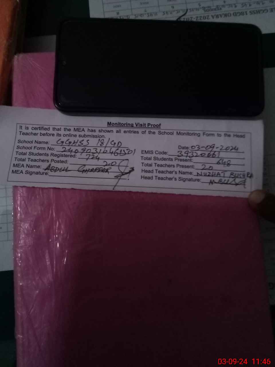 | EMIS Code: 39320061 | Name of School: GGHSS CHAK NO.18/G.D | |||