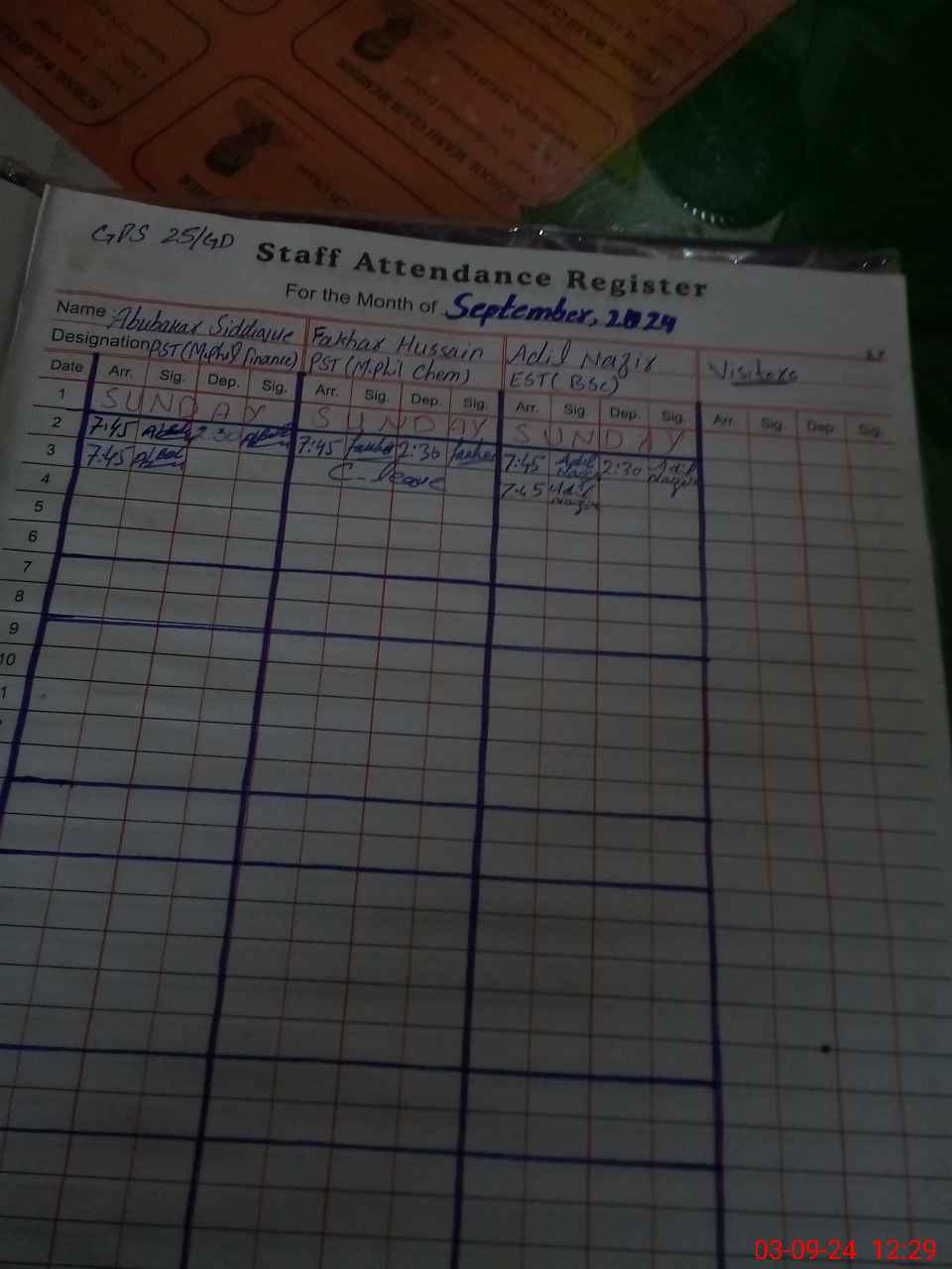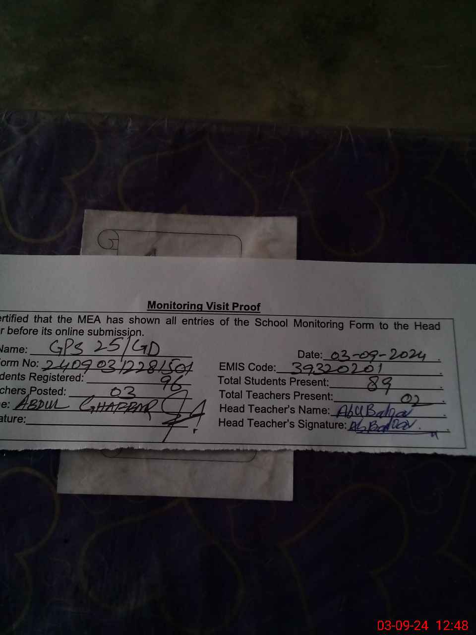 | Name: Ab**** Si**** Designation: (School Headmaster's/Headmistress's) PST Phone/Cell Number: 03**** |