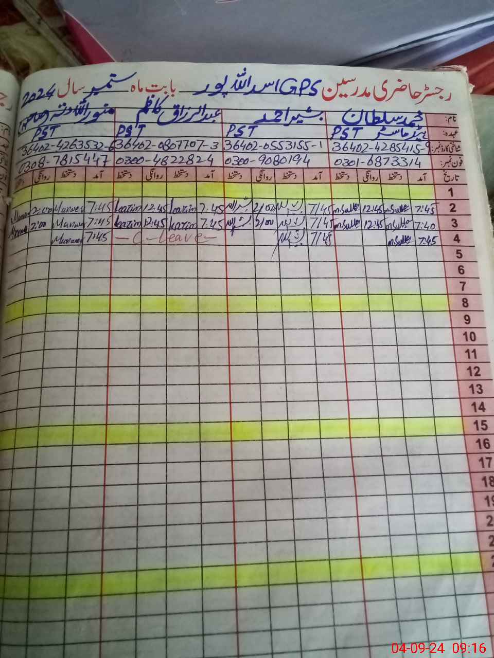 | Name: MU**** SU**** Designation: (School Headmaster's/Headmistress's) PST Phone/Cell Number: 03**** |