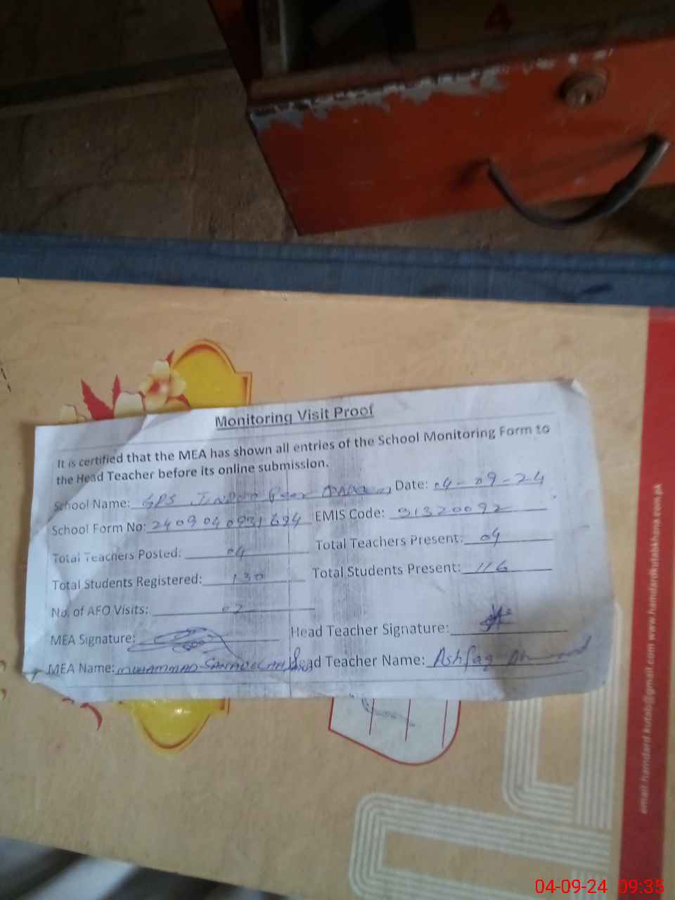 | EMIS Code: 31320092 | Name of School: GPS JINDU PEER QADEEM | |||