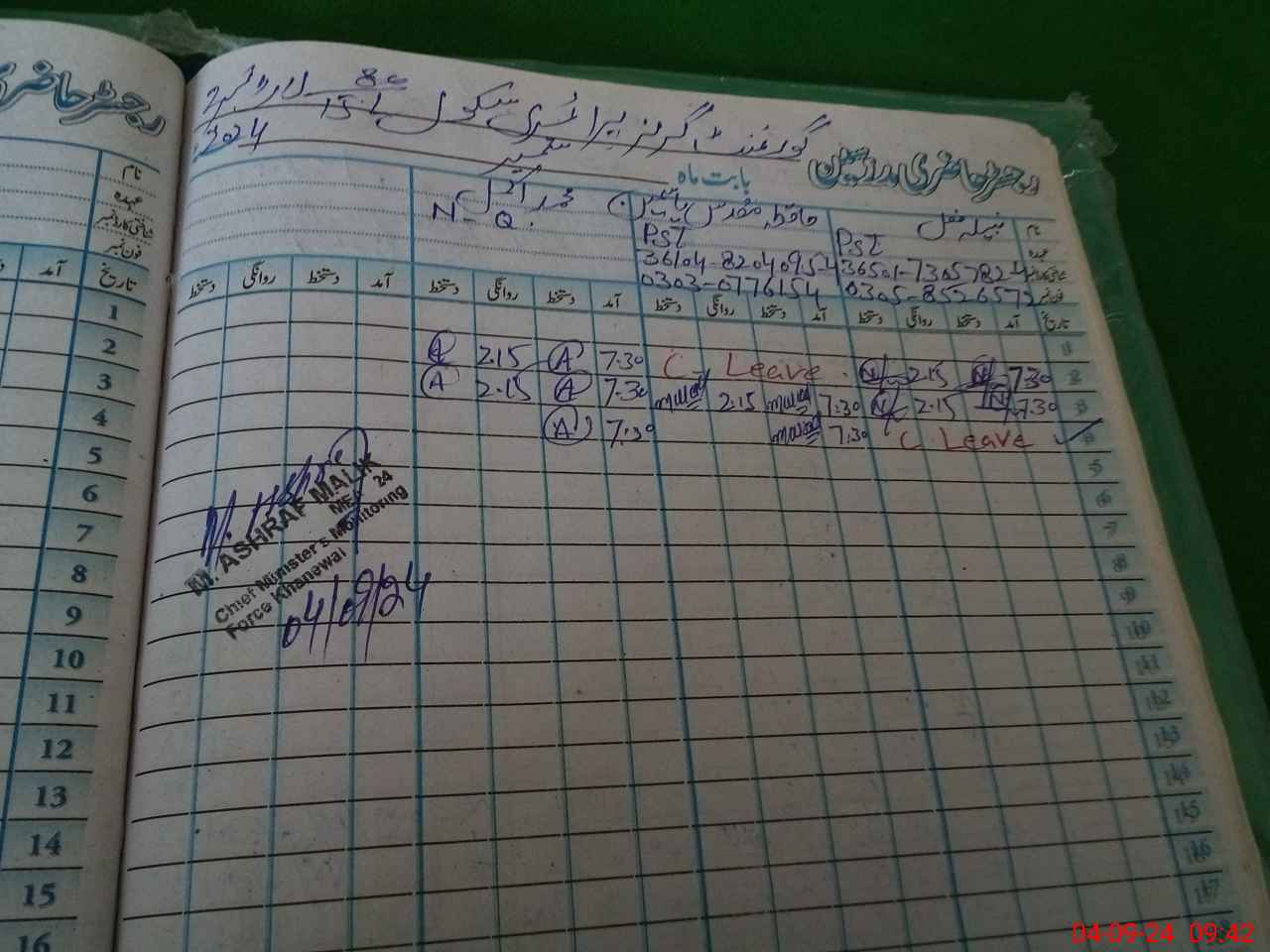 | Name: NA**** MU**** Designation: (School Headmaster's/Headmistress's) PST Phone/Cell Number: 03**** |